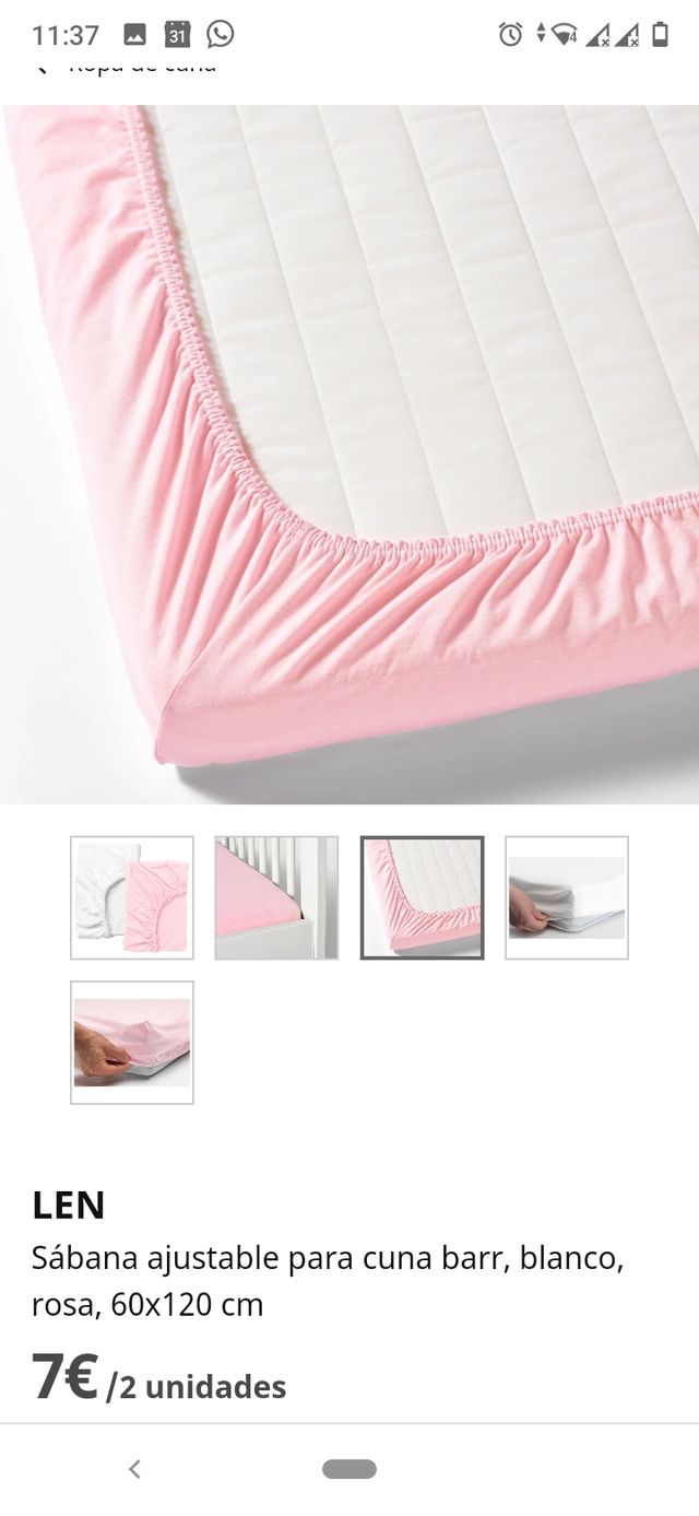Détails du produitRopa de cama. 2 unidades de sabanas bajeras ajustables con elástico de color rosa, de la marca Ikea, modelo LEN, para colchón tamaño 120 cm x 60 cm para cuna.