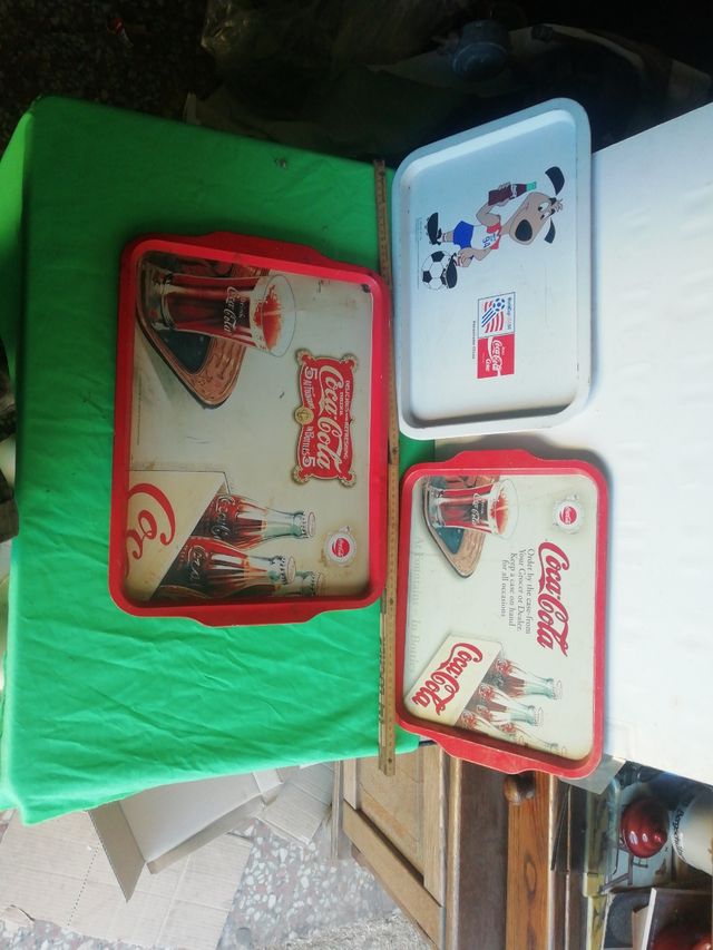Détails du produit3 bandejas de COCA-COLA una de worldcup Usa 94,del año 1992 y dos iguales una pequeña y otra grande, tienen perdidas de pintura y algunas abolladuras, pongo fotos para que se vea el estado de las bandejas envío por wallapop y correos