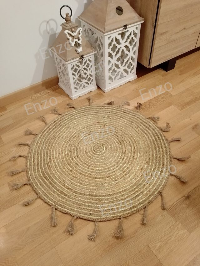 Alfombra yute y pompones 80 cm