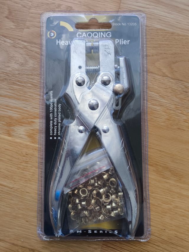 Perfora y adapta el ojal bajo presión de apriete, descripción del producto en las imágenes. Incluye 100 ojales dorados. Solo venta en mano, no envío.