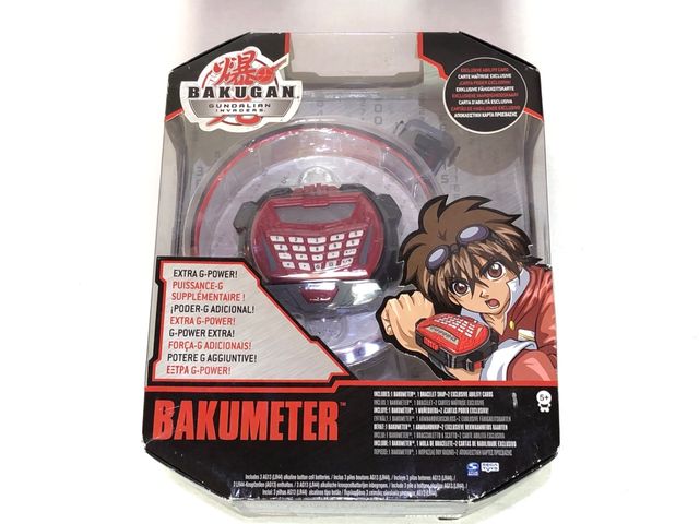 Détails du produitBakumeter de Bakugan, con su muñequera y dos cartas de poder. Fabricado por Sega Toys en 2011.