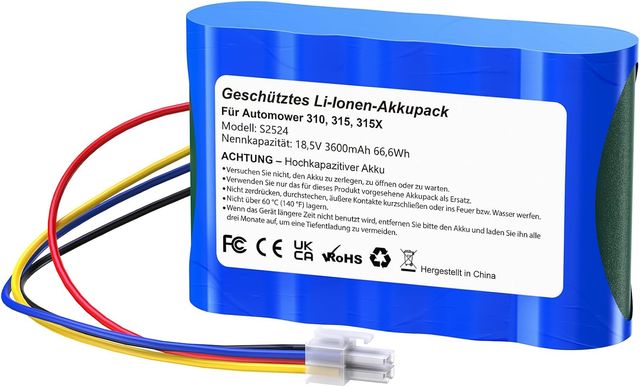 Batería Compatible con los Cortacéspedes Husqvarna Automower 310, 315 y 315X, Gardena Sileno R100Li, R130Li, R160Li (3600 mAh, 18.5V, Iones de Litio).