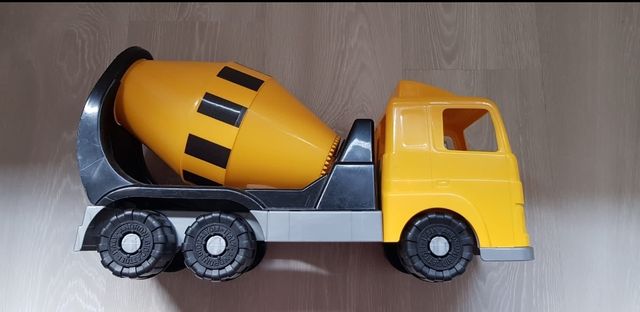 Camion hormigonera. La hormigonera gira con la ruedecita que lleva en el chasis.