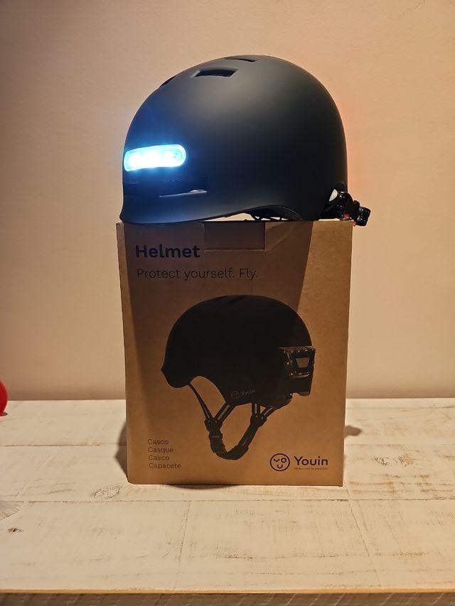 Casco Youin regulable, con luces, talla M/L contorno 58-61 cm, fallan algunos leds en la parte trasera, ver fotos, resto como nuevo