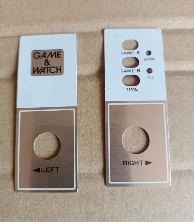 Se venden dos chapas o placas embellecedoras para la consola Game & Watch. Están en buen estado.