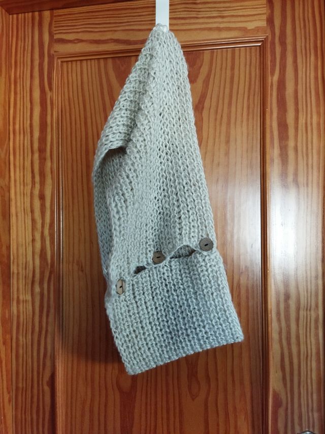Cuello o bufanda cerrada con botones de madera decorativos. 70 cm x 33 cm. Compra solidaria por los animales sin hogar. Gracias por colaborar.