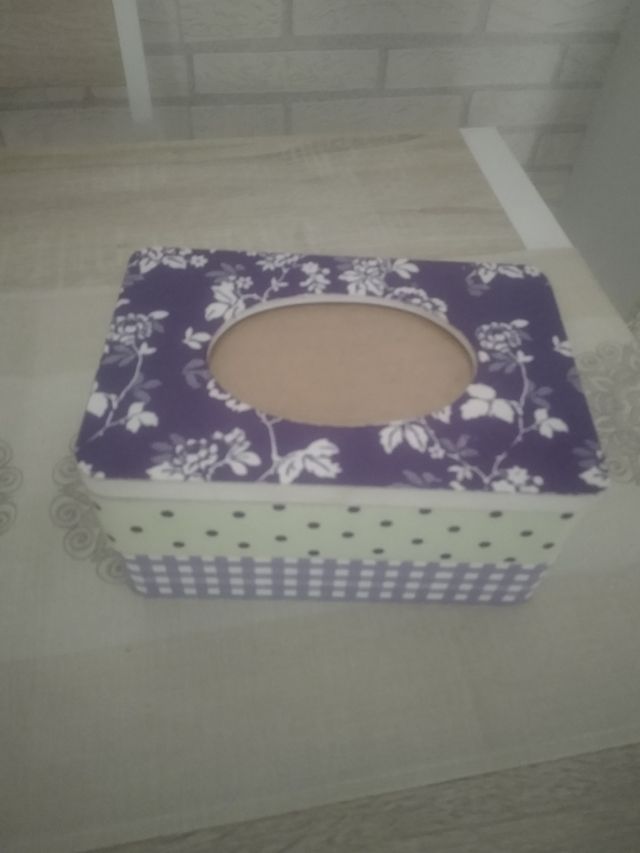 caja decorativa en madera, con dos compartimentos y portafotos.