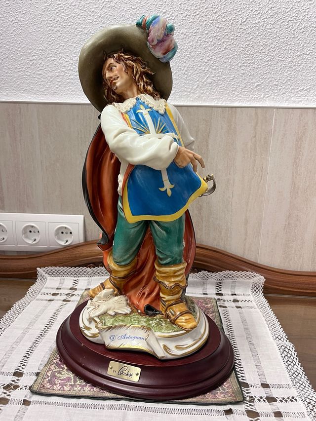 Détails du produitFigura de porcelana que representa al famoso mosquetero D'Artagnan, personaje histórico principal de la novela "Los tres mosqueteros" de Alejandro Dumas.