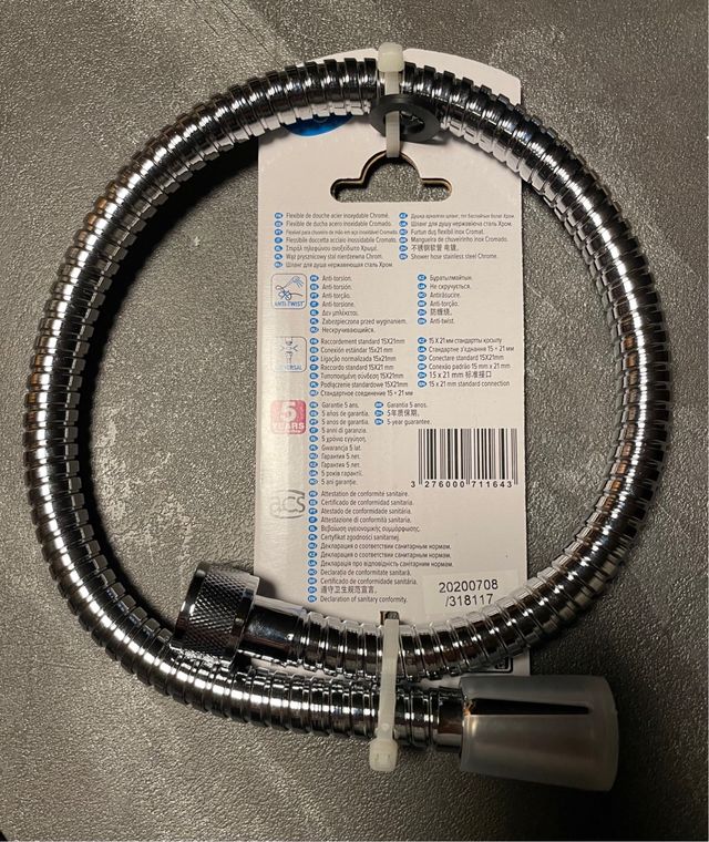 Flexo de ducha SENSEA Essential 60 cm cromo brillante. Nuevo, sin uso.
