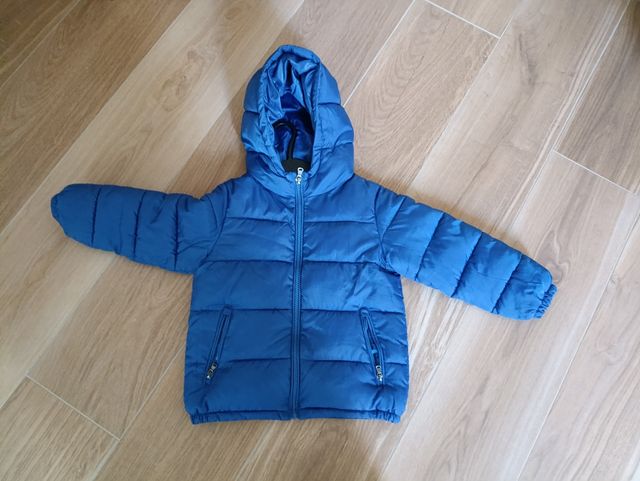 Giubbino bambino OVS. TG 30-36 M ( 98 cm ). Colore blu, con zip centrale e cappuccio. Con imbottitura.