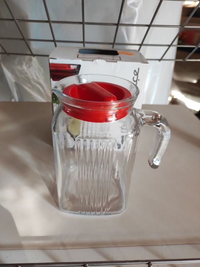 jarra cristal con tapa, cuadrada para estante de frigorífico 600cc, producto nuevo, liquidación de tienda