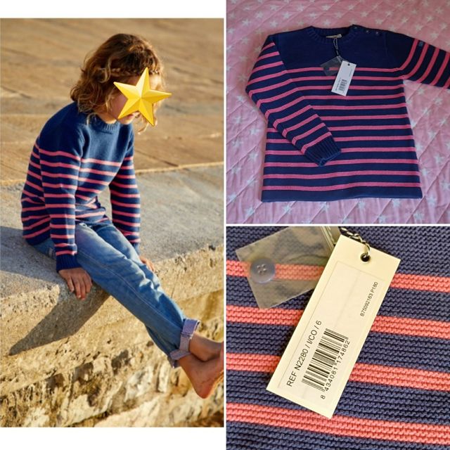 Nuevo a estrenar Jersey de primavera verano en talla 6 años de color azul y frambuesa, rayas marineras, moda náutica Batela . Es una monada Unisex