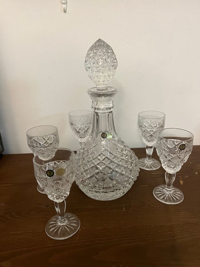Juego Licorera y Copas Cristal Bohemia