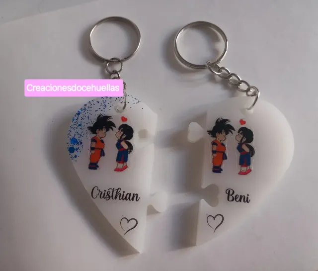 Conjunto de un llavero con forma de corazón puzzle personalizadas y figura de Stich (Angel) con nombre personalizado. (Reservado para R.)