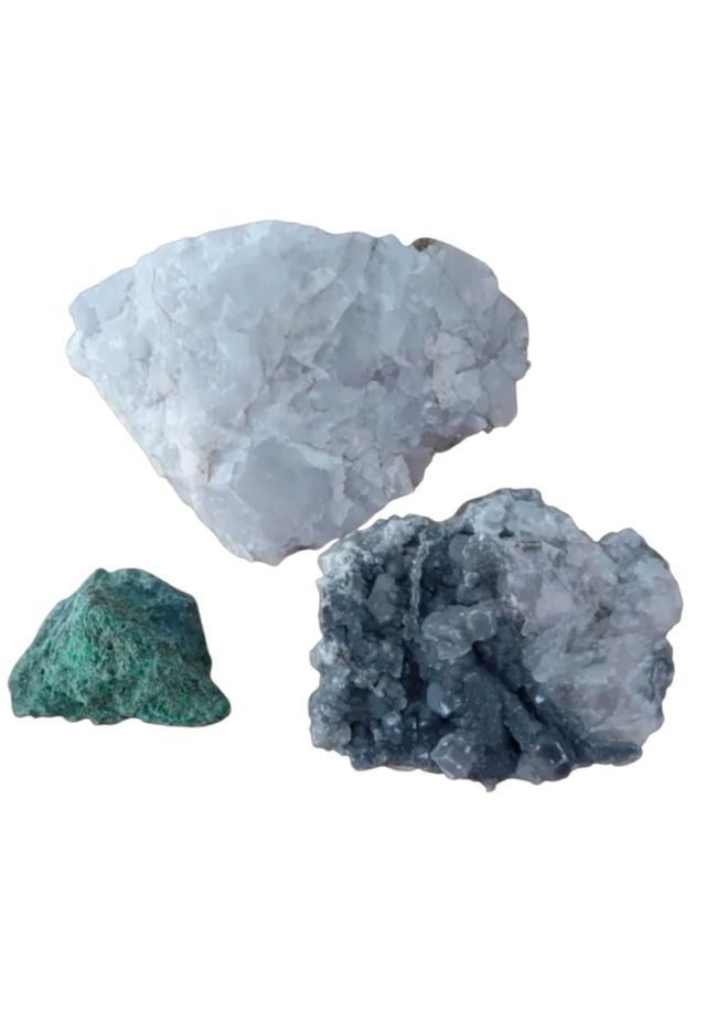 - Un mineral con formaciones cristalinas grises y blancas. Medidas desde 6,8 cm a 12 cm.
