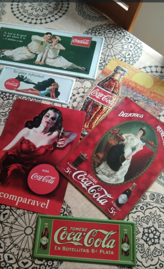 Détails du produitConjunto de carteles metálicos de Coca-Cola con diseños retro. El precio es por el conjunto, 8€ todos