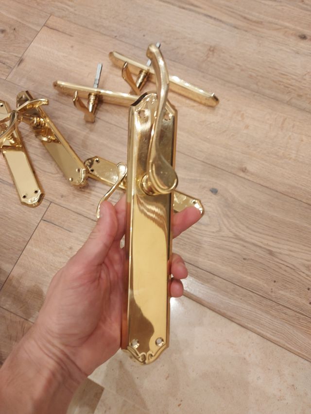 3 manillas doradas. 22 cm largo, 4,5 cm ancho. Una de ellas con pestillo interior. 5 euros la unidad. 12 euros las 3