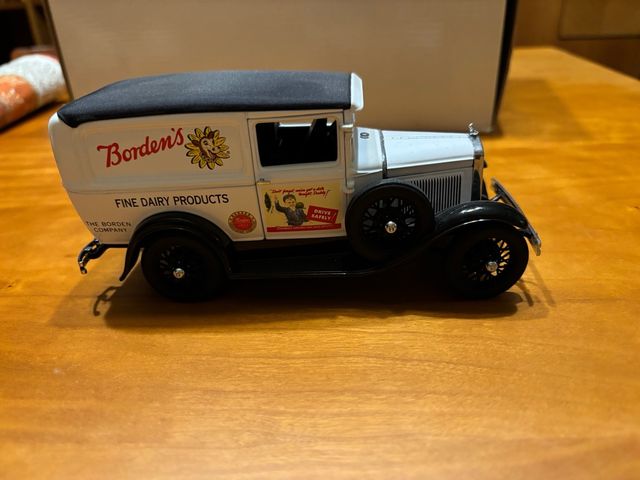 Détails du produitRéplica detallada de un camión de reparto de leche de la marca Borden de 1930. Este modelo captura el diseño clásico de los vehículos de reparto de la época.