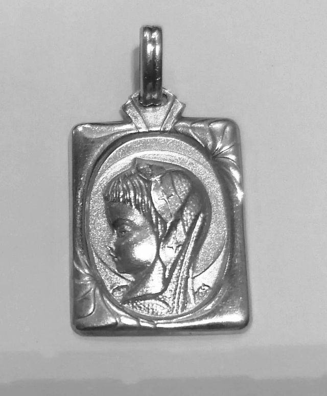 medalla rectangular de la virgen niña en plata