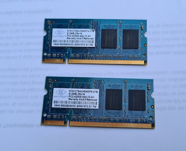 2 módulos NANYA 512MB Notebook SODIMM DDR2 PC4200(533) UNBUF 1.8v 2RX16 200P 64MX64 32mX16 CL4 8k NT512T64UH8A0FN-37B