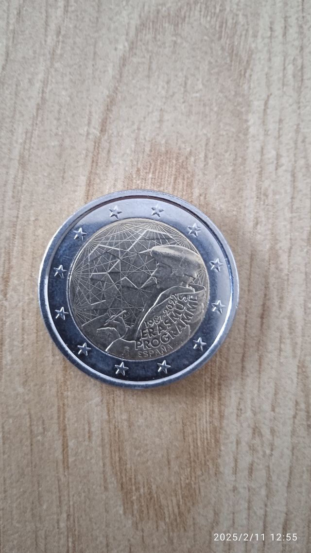 Moneda conmemorativa de 2€ de España, año 2022, con motivo del 35 aniversario del programa Erasmus. En buen estado.