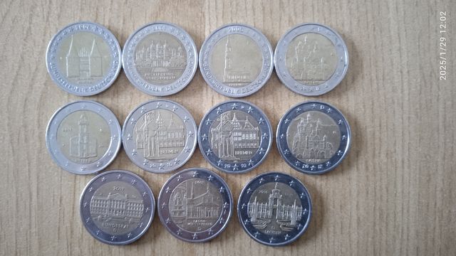 Détails du produitLote de 9 monedas de 2€ conmemorativas de Alemania de distintos años. Todas ellas en condiciones aceptables como puede verse en las fotos. Se regalan dos, que están repetidas, de los años 2010 y 2012. No se venden sueltas.