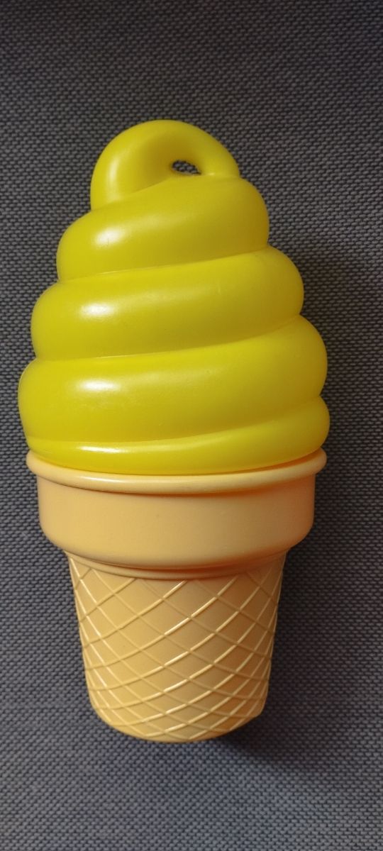 Original muñeca con forma de cucurucho de helado de vainilla de los años 80. - Diseño de helado de vainilla. - Cono con textura de gofre.
