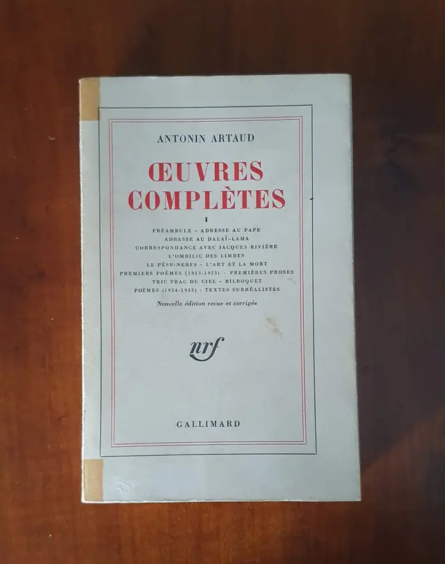 Détails du produitOeuvres complétes. Antonin Artaud. Editions Gallimard 1970. Como nuevo. EN FRANCÉS!! Para ver más libros, consulta mi perfil. Para más información, no dudes en contactar.