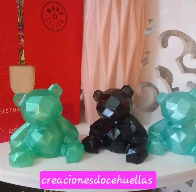 Détails du produitPack compuesto por 3 ositos de resina, elaborados con tonos polvos mica, en color verde agua y en color negro hecho con tinta.