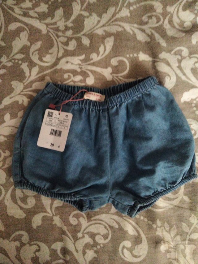 Pantalón corto cubrepañal, talla 18 meses. Color tela vaquera. Tela fina ideal para el verano - Ideal para bebés de 18 meses. - Diseño práctico y cómodo.