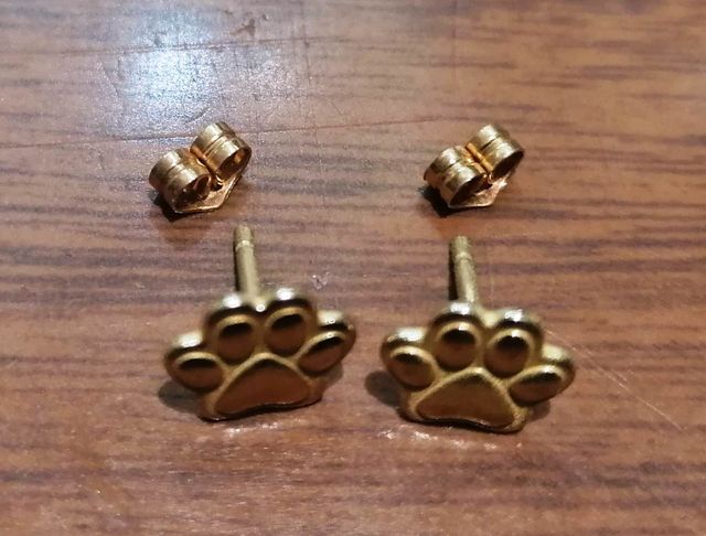 pendientes huellas de perro en plata con baño de oro 23kt - 7x8mm