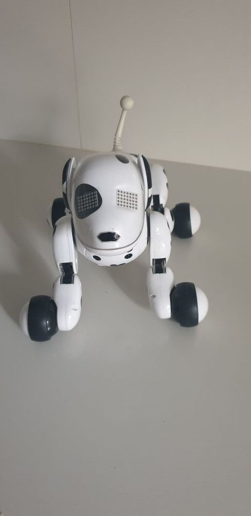 Robot perro que obedece tus órdenes y puedes enseñarle nuevas. Baila canta hace pipí ladra etc. El juguete está nuevo y se recarga con cable USB.