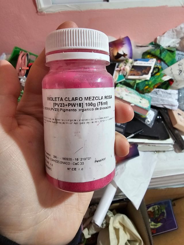 Détails du produitPigmento comprado en Manuel riesgo en Madrid para mi clase de pintura en BBAA. El color real es como un magenta. Hay un poco más de medio frasco. Manipular con guantes. Hago envios. Entregas en mano en leganes central