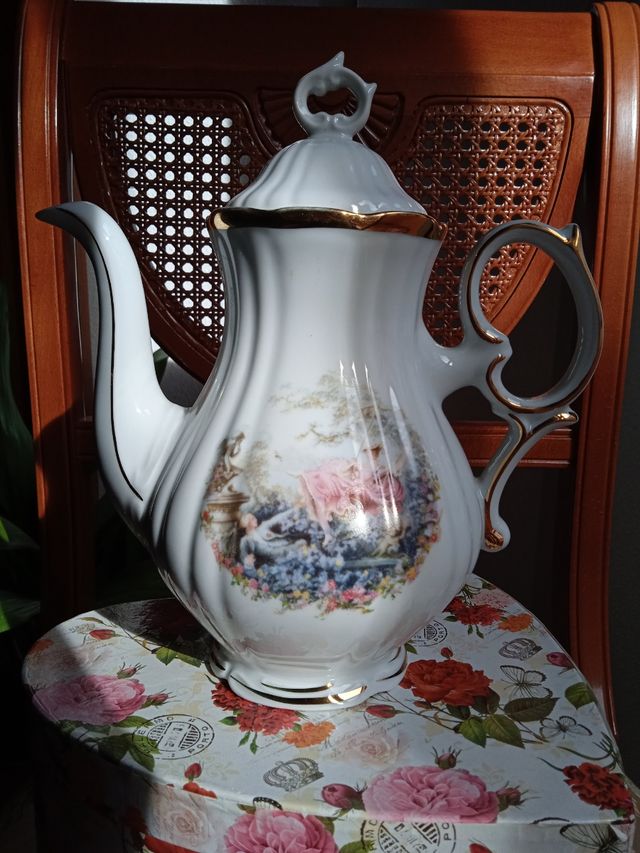 FINA Y PINTADA A MANO ORO TETERA CAFETERA ANTIGUA
