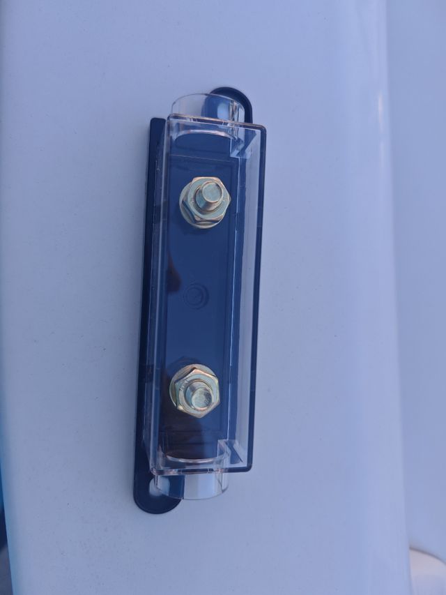 Portafusible con tapa transparente y fusibles 80 A.se vende los 4 - Tornillos dorados. - Base negra.