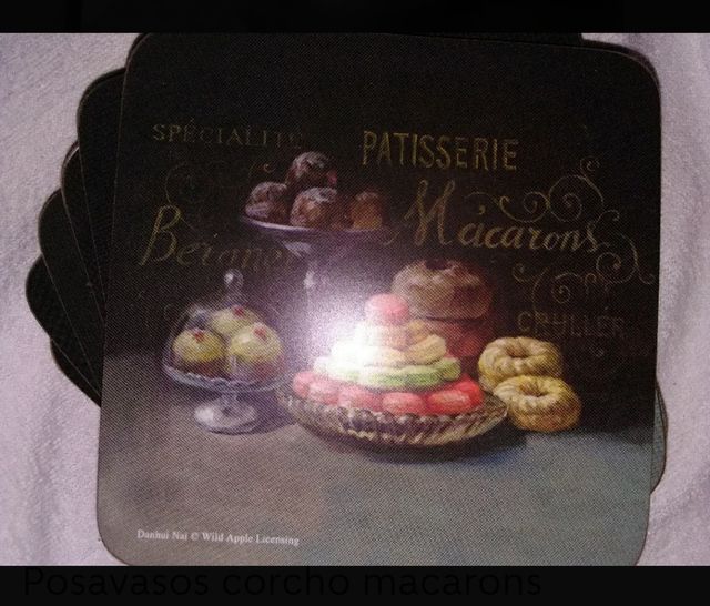Détails du produitPosavasos corcho macarons nuevos a estrenar. Con caja, juego de 6 posavasos nuevos a estrenar, con base de corcho para que no resbalen. Dibujo de macarons.KjaH6