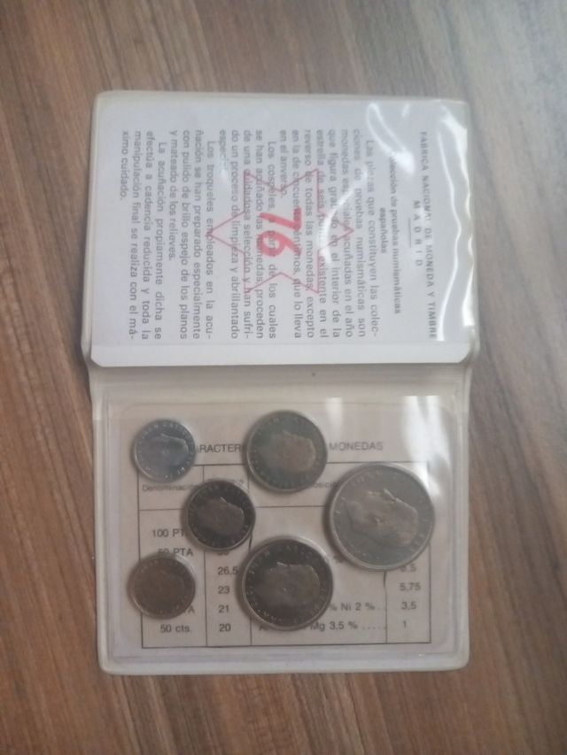 Détails du produitJuego de pruebas numismáticas de la Fábrica Nacional de Moneda y Timbre de 1976. Se incluye una carpeta con monedas de diferentes valores. Las monedas se ven en buen estado. - Carpeta de piel sintética en color beige. - Contiene varias monedas de diferentes denominaciones. - Ideal para coleccionistas.
