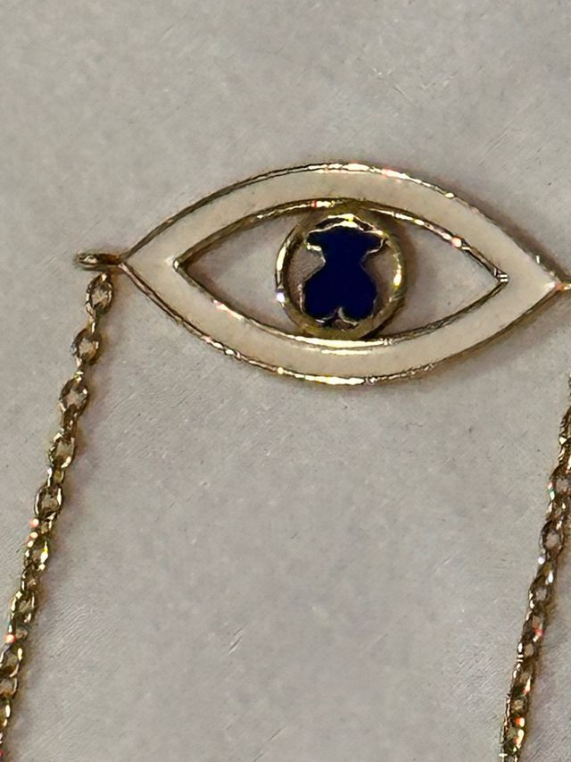 Détails du produitPulsera TOUS Good Vibes ojo bear de plata vermeil con esmalte blanco y azul. Tamaño del ojo: 2,2 cm. Longitud de la pulsera: 17,5 cm. Plata de primera ley recubierta de oro de 18kt con un espesor de 3 a 5 micras y sin ningún otro metal entre ambos. Técnica de producción: Microfusión.