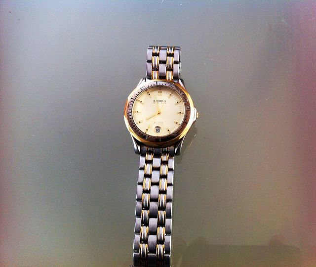 Reloj en oro e inoxidable caja metálica del diseñador Perry Ellis modelo AMERICA con libreto de instrucciones