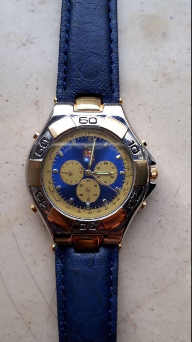 Reloj de los años 90. Es nuevo. Con correa de piel azul. Solo le falta poner la pila.