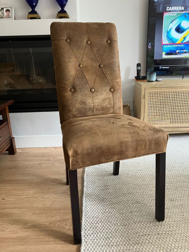 Silla capitoné de tela y madera marrón