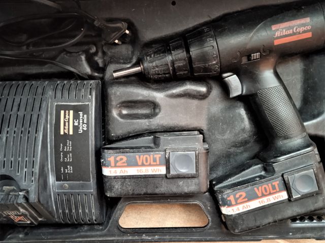 Atornillador y taladro de la prestigiosa marca Atlas Copco, maletín con cargador y 2 baterías que admiten todavía carga baja