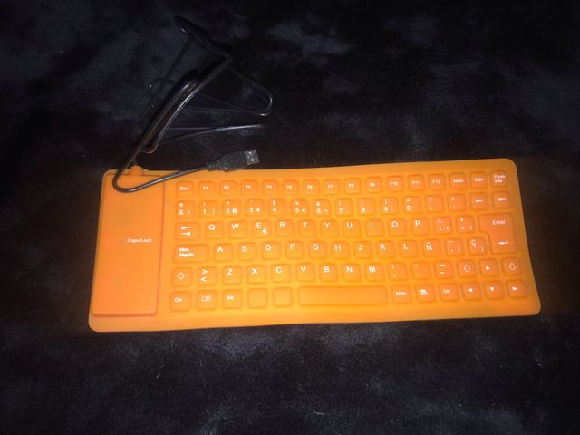 Teclado portátil flexible entrada usb perfecto para viajes etc porque se enrolla sin problemas al ser de goma