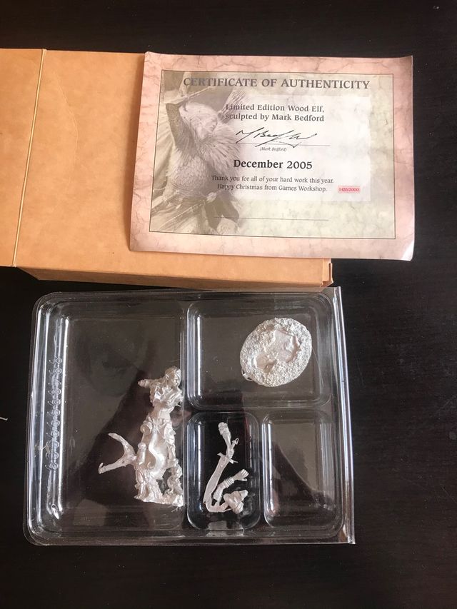 Nueva en su caja original y sin ser montada. Miniatura de Wood elf esculpida por Mark Bedfor.