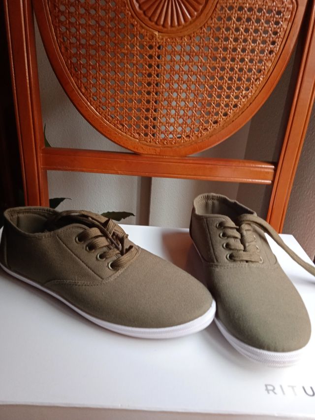 ZAPATILLAS ECOLÓGICAS LONA VERDE MILITAR NUEVAS
